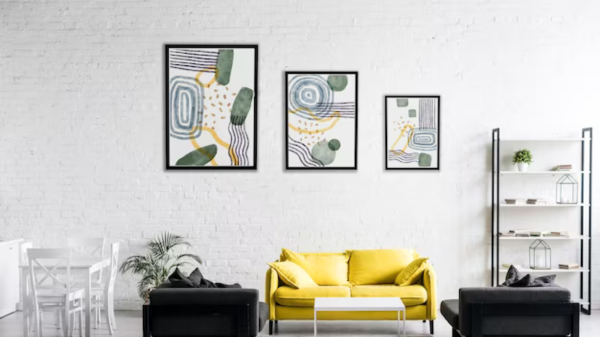 - Tạo điểm nhấn nghệ thuật: Tranh treo tường là một cách tuyệt vời để tạo điểm nhấn nghệ thuật trong không gian. Chúng có thể làm cho phòng khách trở nên sinh động và hấp dẫn hơn.