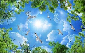 Trần nhà được vẽ trần mây với hình ảnh của bầu trời, mây, cây cối, chim chóc, phong cảnh thiên nhiên sẽ mang đến cho chúng ta cảm giác tự do và thư giãn đầu óc. Hình ảnh của các bức tranh trần mây sẽ giúp cho bạn giảm căng thẳng, tinh thần vui vẻ…