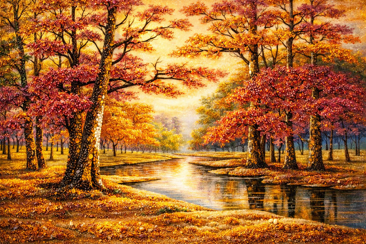 Tranh Đá Hổ Phách Mùa Thu Vàng