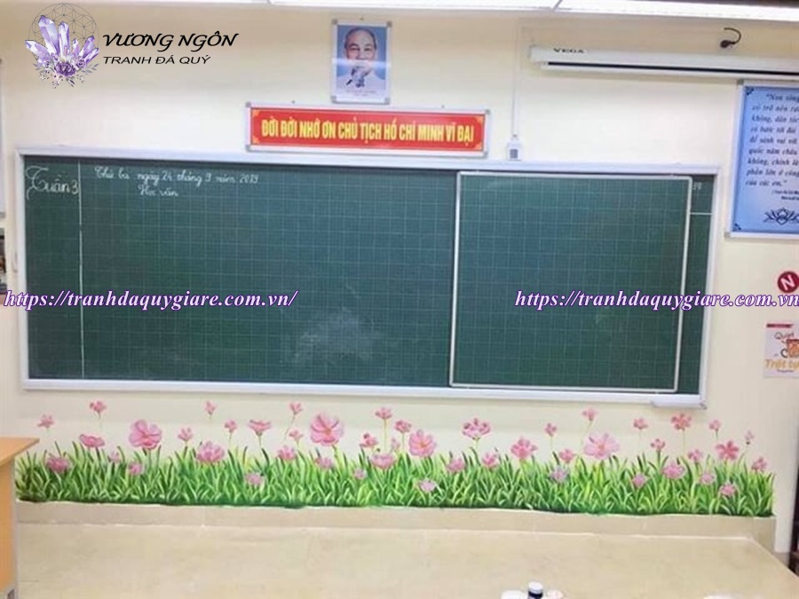 - Che khuyết điểm: Tranh còn có thể che đi những khuyết điểm hoặc vết trầy trên bề mặt tường, làm lớp học thêm gọn gàng và đẹp mắt.