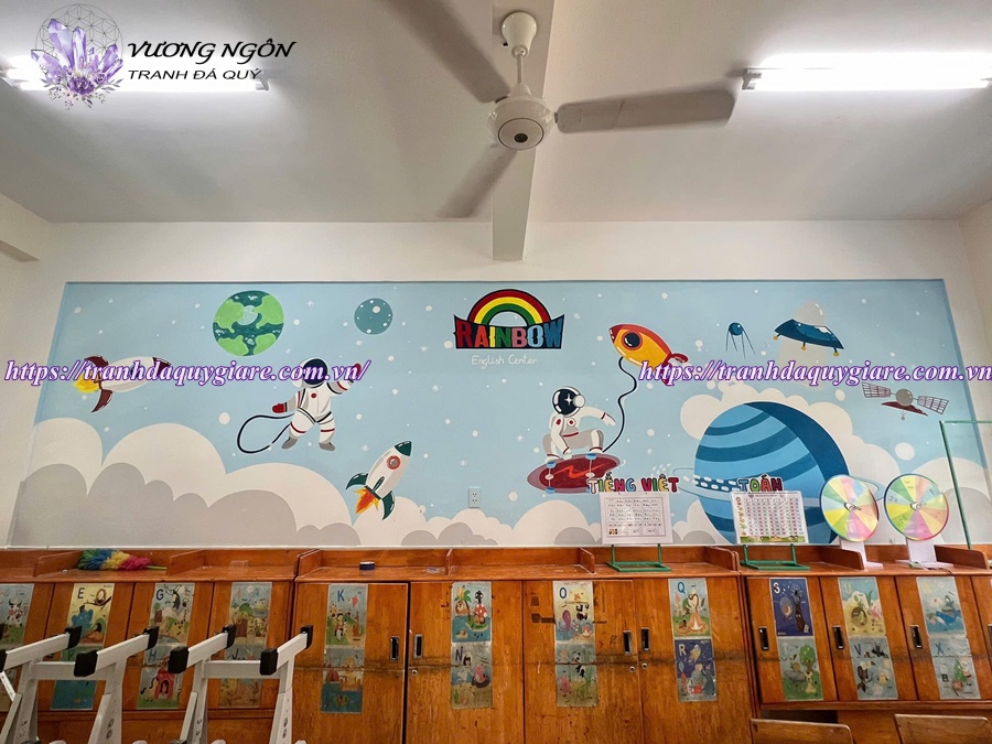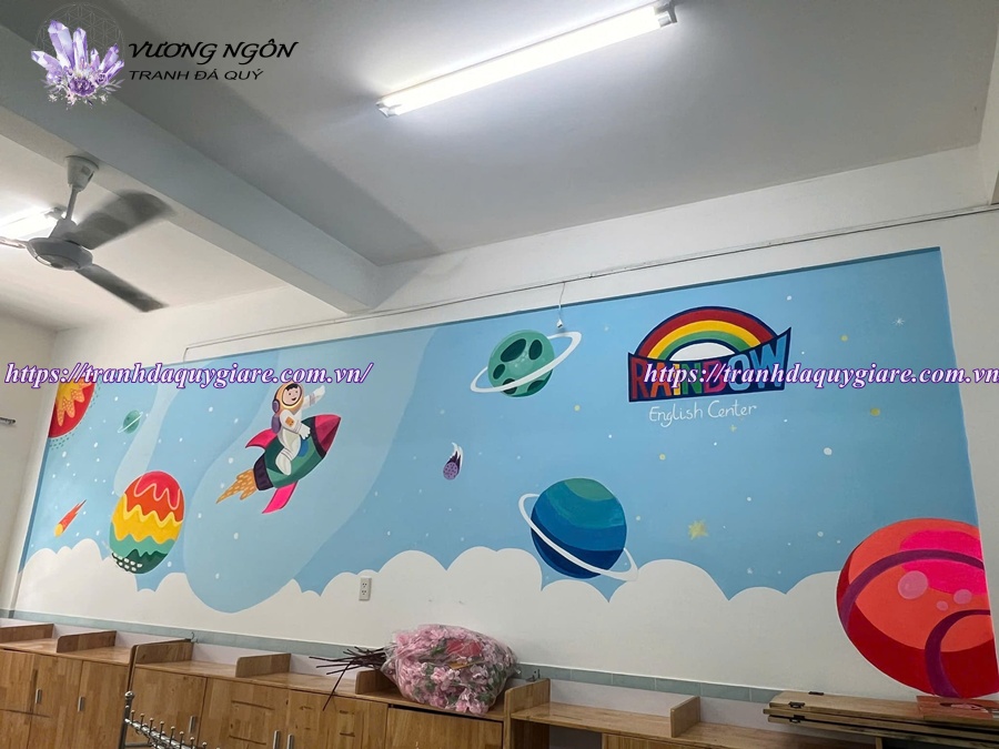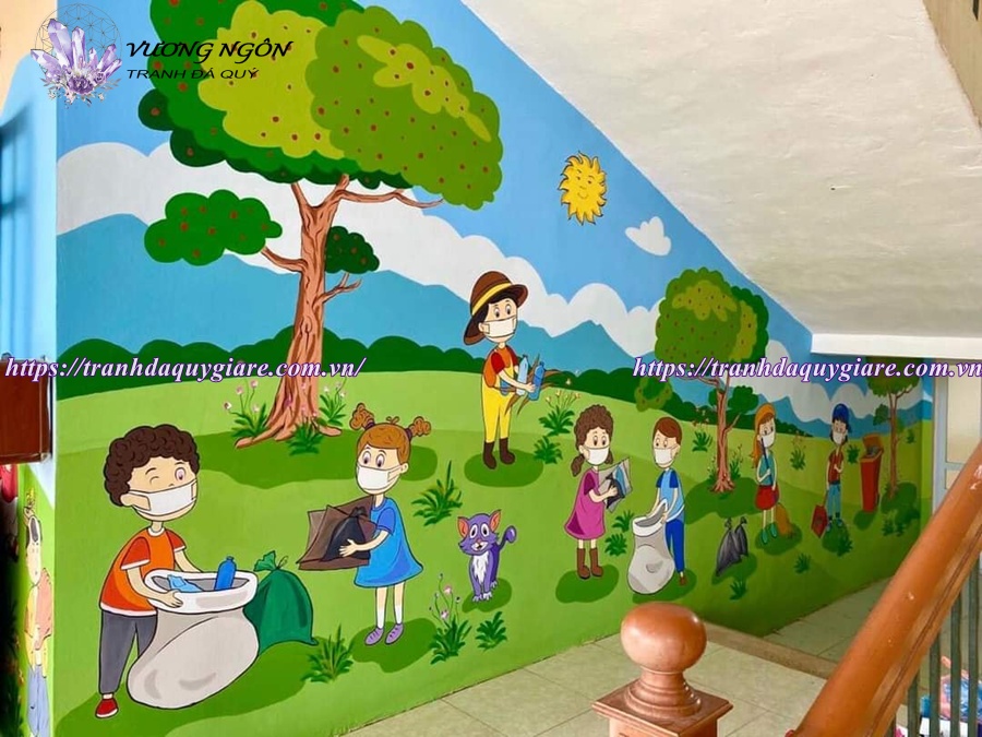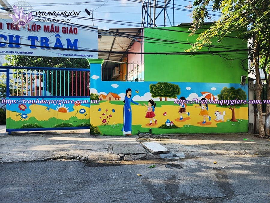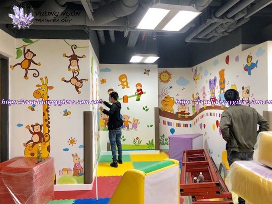 Dịch vụ vẽ tranh tường mầm non tại Tranh Vương Ngôn mang đến không gian lớp học vui tươi, sinh động và an toàn cho trẻ. Giá vẽ tranh thường dao động tùy theo diện tích, độ phức tạp của mẫu tranh (2D hay 3D), chất liệu sơn và yêu cầu thiết kế riêng.