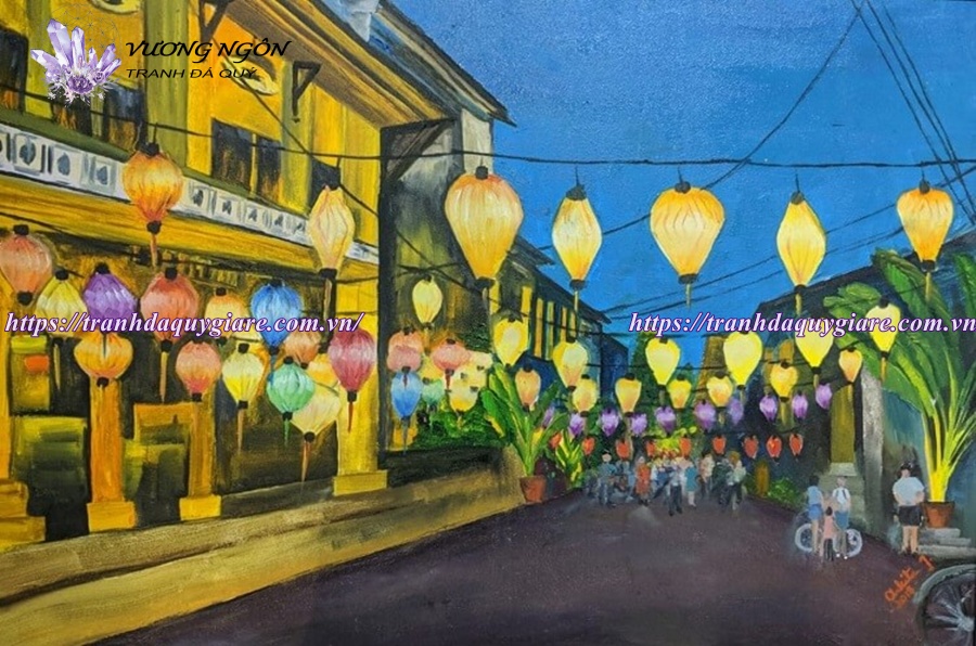 - Chủ đề lồng đèn đặc trưng: Tranh lồng đèn Hội An được yêu thích nhờ sự rực rỡ, lung linh và giàu chất thơ, mang lại điểm nhấn nổi bật cho không gian.