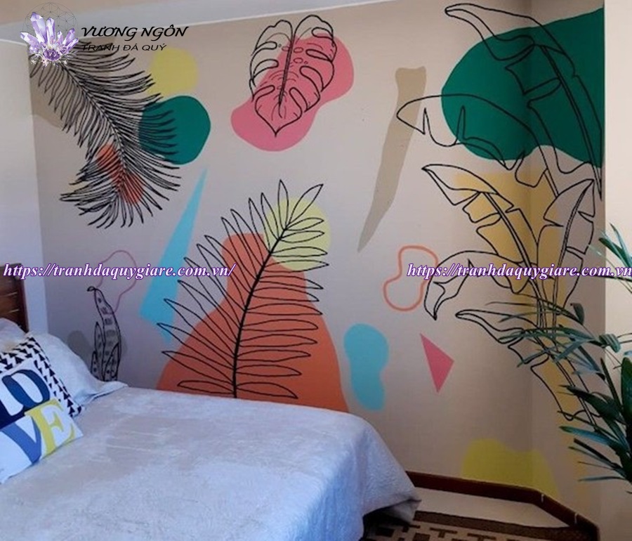 - Đa dạng không gian: Có thể vẽ trên tường, trần, sàn hay cột nhà. Với phòng nhỏ, tranh tường còn tạo cảm giác rộng rãi và thoáng đãng.
