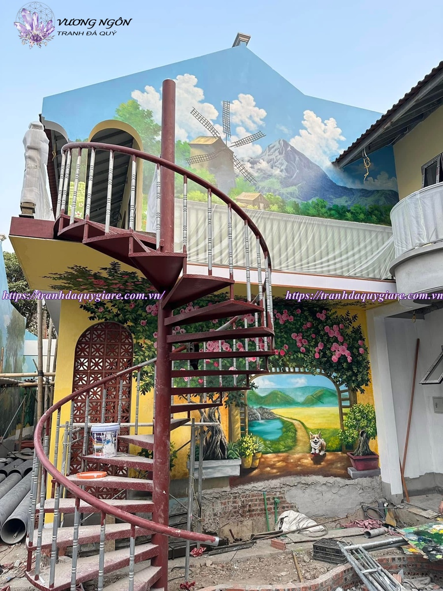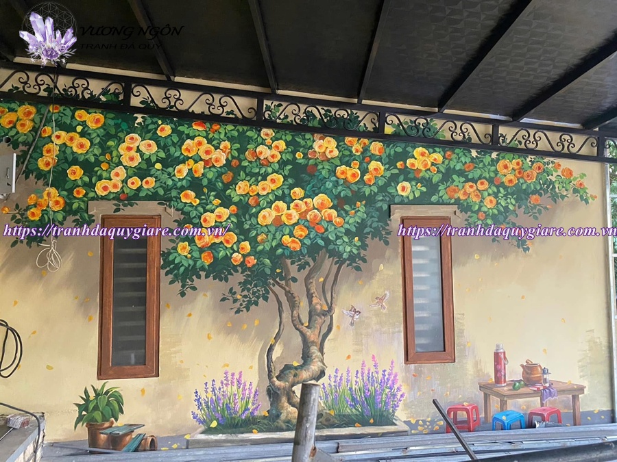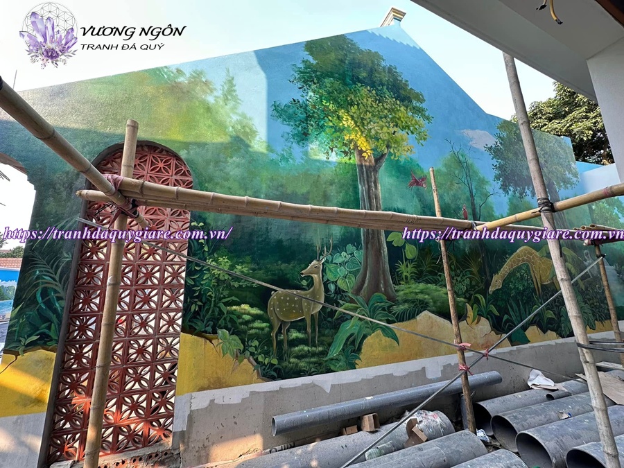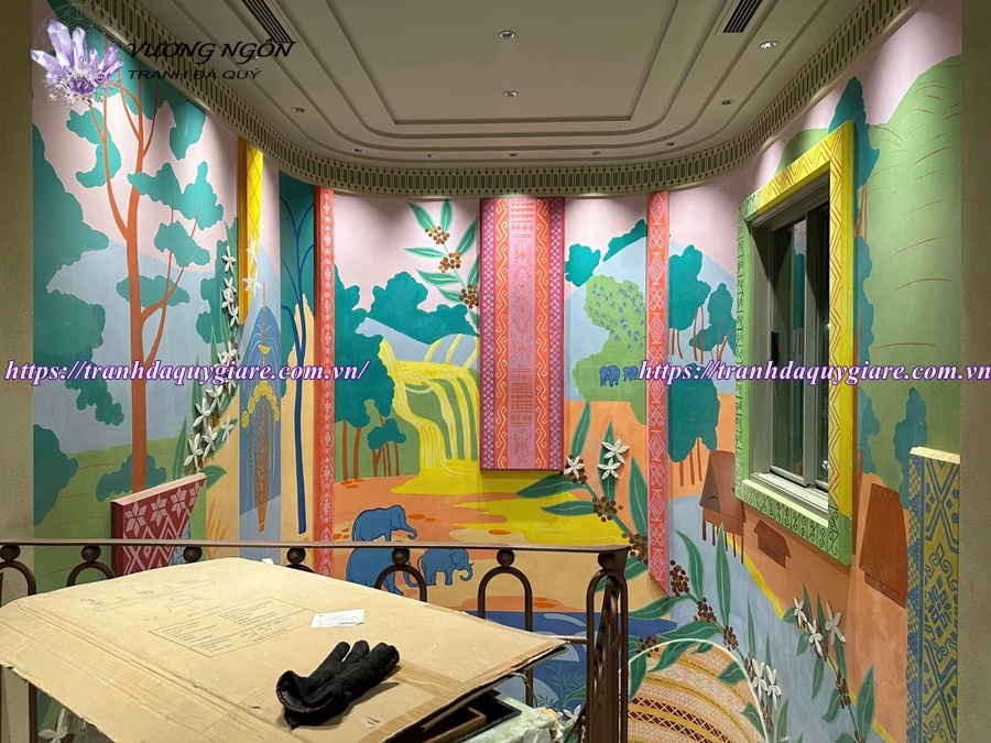 - Chất liệu màu: Sử dụng sơn nước, sơn acrylic, sơn gốc dầu và các họa phẩm chuyên dụng khác, đảm bảo màu sắc tươi sáng và bền lâu.