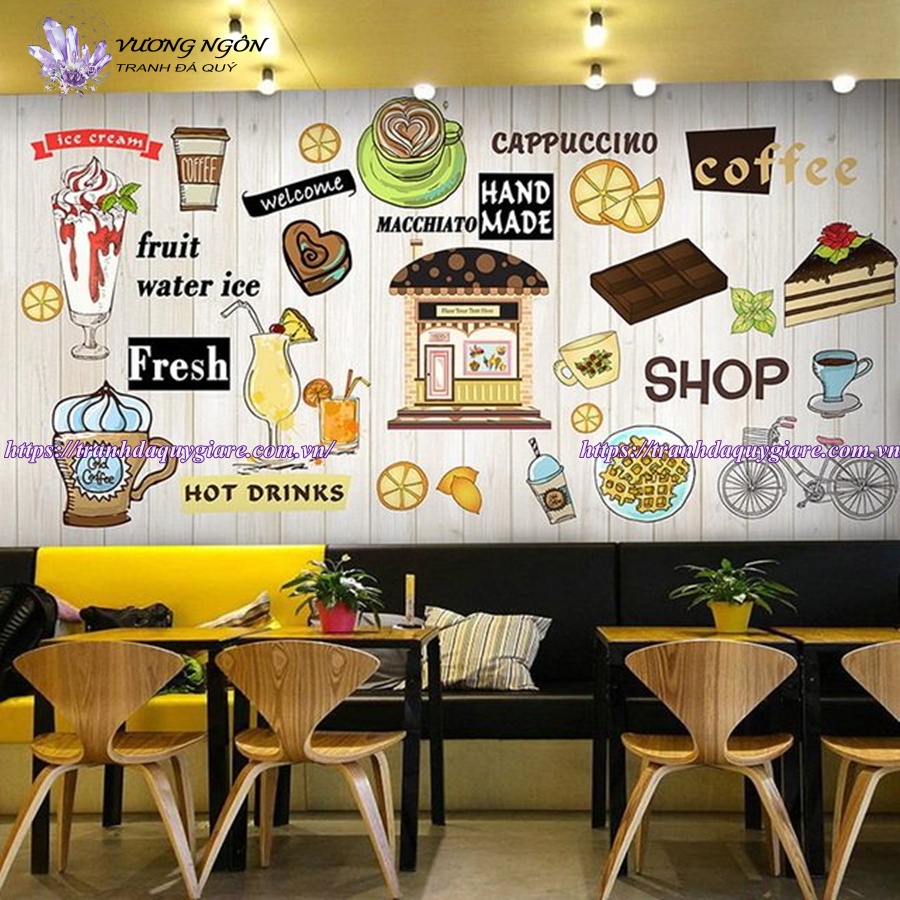 Sau đây là các mô hình quán và phong cách tranh tường thường được ưa chuộng, giúp không gian quán cafe, trà sữa hay trà chanh thêm sinh động và ấn tượng: