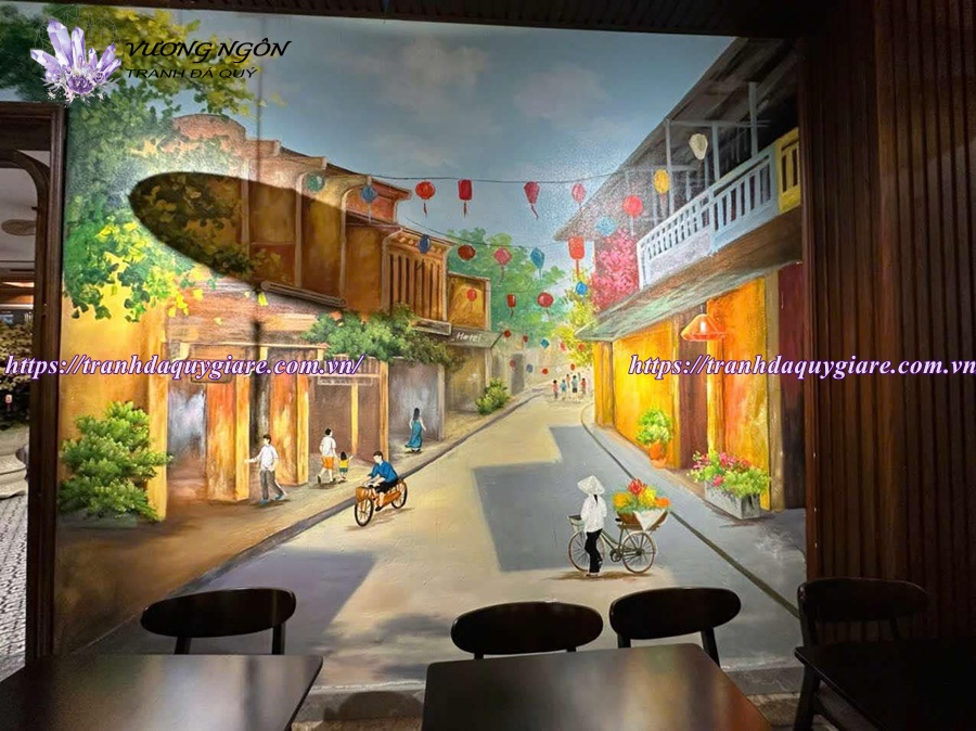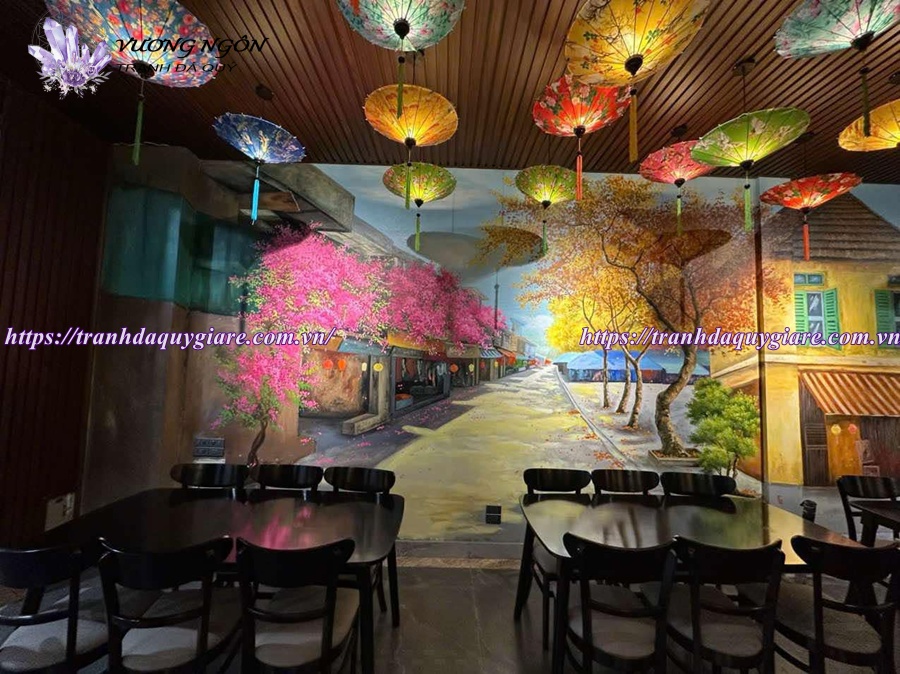 Tranh tường phong cảnh | Cảnh phố xá, chợ đêm, làng quê Việt Nam. Mang đến cảm giác thoải mái, gần gũi. | Quán nhậu bình dân, không gian cần sự thư giãn. |