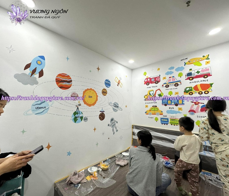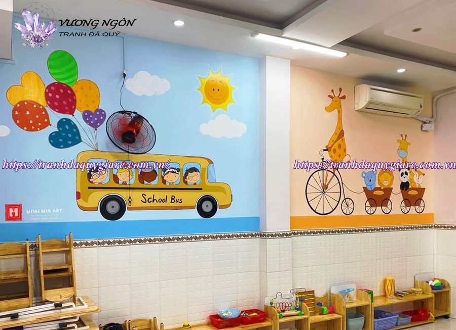 - Hỗ trợ giáo dục trực quan: Tranh tường là công cụ trực quan giúp học sinh dễ tiếp thu kiến thức hơn, rèn luyện trí nhớ hiệu quả.