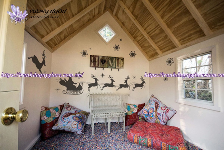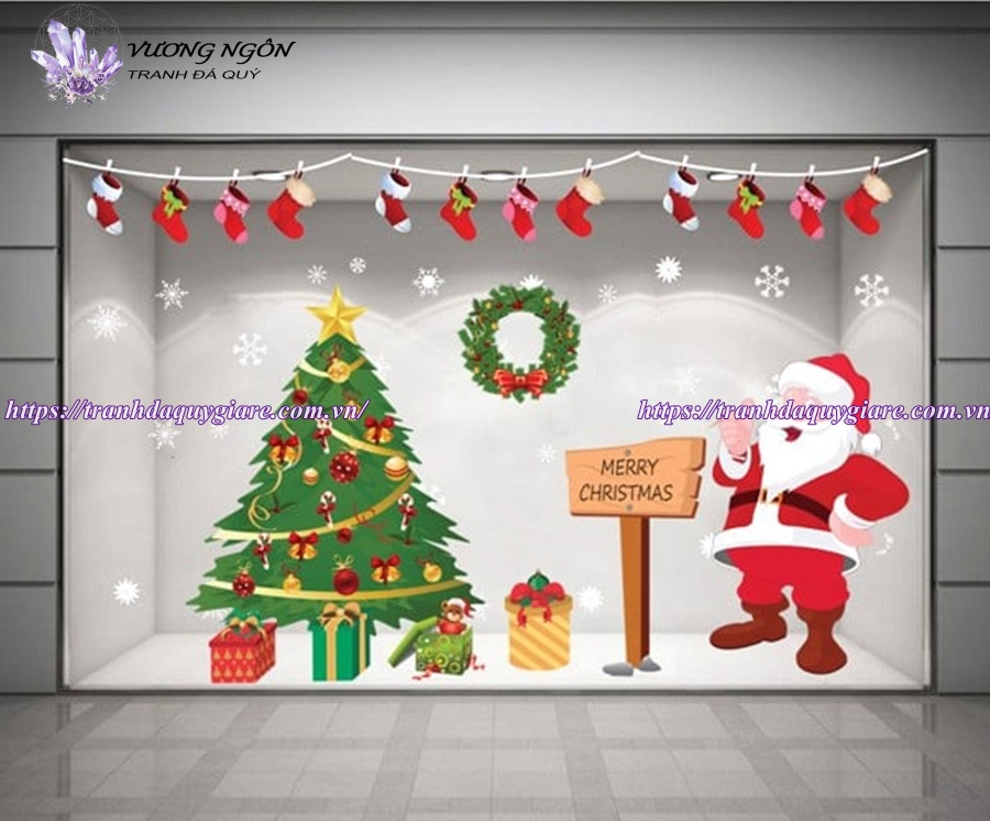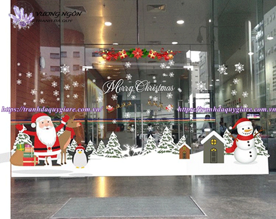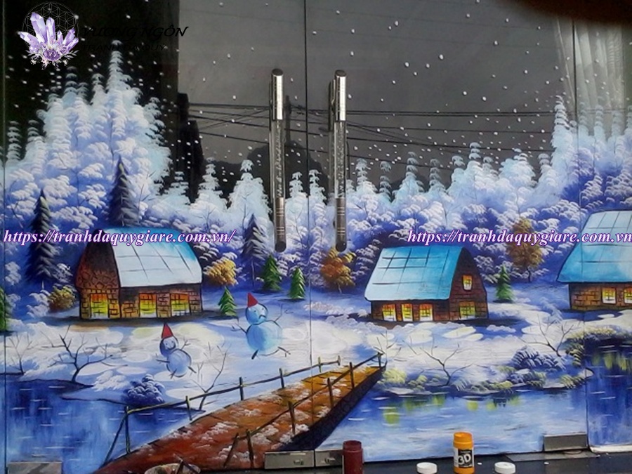 - Tranh Noel thường được vẽ trực tiếp lên tường hoặc kính cường lực (cửa kính).