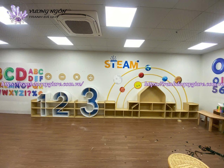 - Tranh tường có thể minh họa bảng chữ cái, số đếm, sự kiện lịch sử, văn hóa, khoa học, giúp học sinh tiếp thu kiến thức trực quan và sinh động.