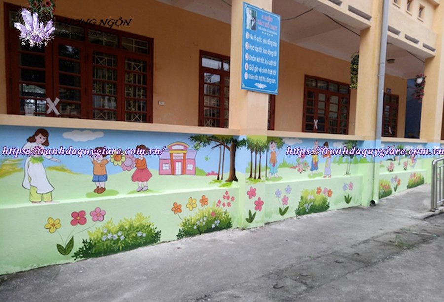 - Độ bền: Tranh tường cho trường tiểu học thường có tuổi thọ từ 5 – 10 năm, tùy thuộc vào chất lượng thi công và điều kiện môi trường.