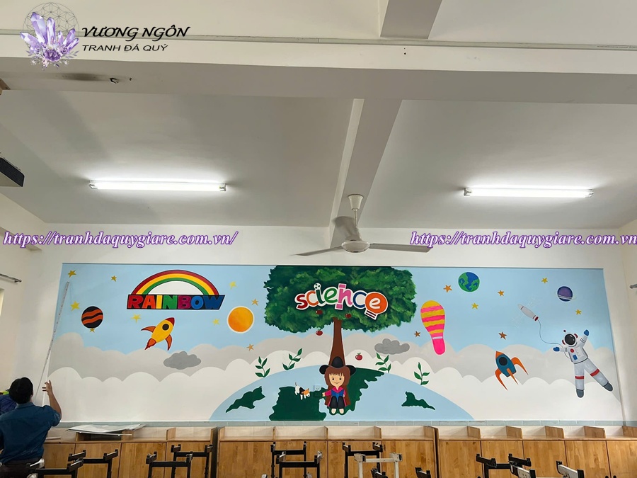 - Tranh tường trang trí không gian lớp học, tạo môi trường thân thiện và độc đáo.