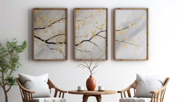 Dưới đây là một số mẫu tranh treo tường phòng khách phù hợp với bàn ghế gỗ và mang lại vẻ đẹp sang trọng:
